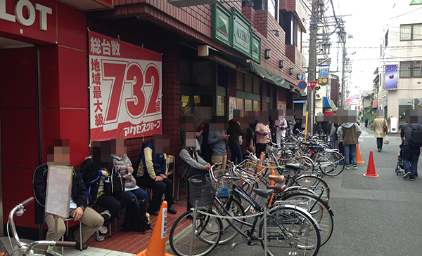 開店前に集まっていたプレイヤーの人数は50名前後。ホールの前にできた長い列からは、遊技に対する期待が感じられた。
