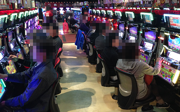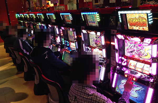 「パチスロ ケロット3」や「ハナビ」などのボーナスタイプも盛況で、空き台もほとんどみあたらない。