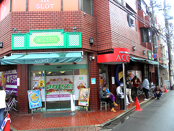 同店はパチンコ専門店の「アクセスⅠ」、パチンコ・パチスロの低貸し玉専門店の「アクセスⅡ」、20円パチスロ専門店の「アクセスⅢ」と、建物が3つに分かれて併設されているホールだ。