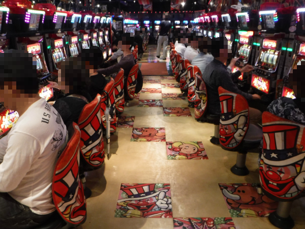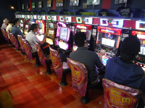 20円パチスロコーナーを見てみると、「押忍!番長3」や「バジリスク〜甲賀忍法帖〜絆」のにぎわいが大きく、各人とも心から遊技を楽しめているようであった。