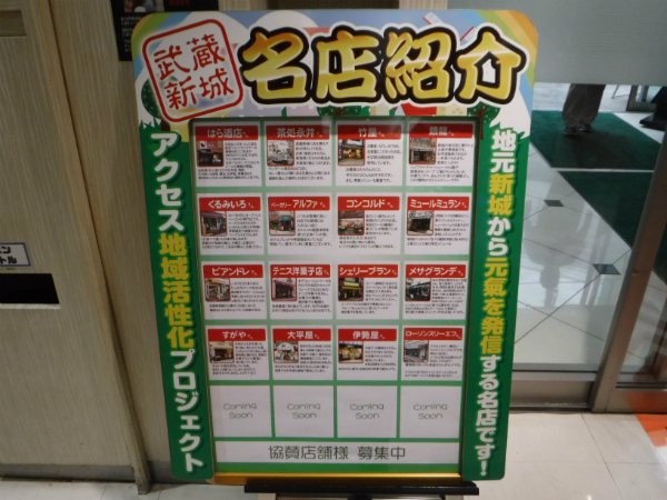 地域結成活プロジェクトと称して、周りの名店を紹介するボードを発見。同店の地域貢献への思いが伝わってきた。