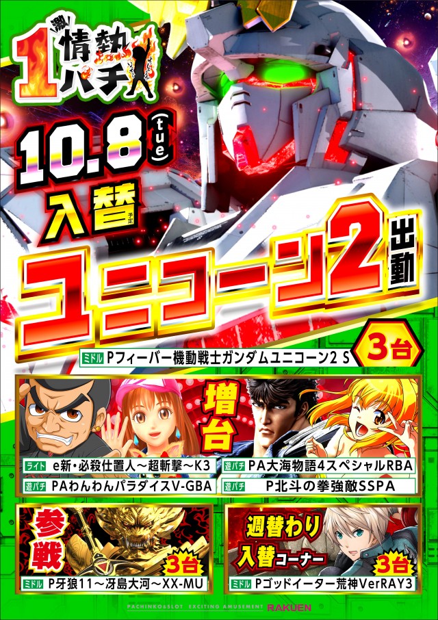 明日9時開店!最新ジャグラーなど最新台導入後の週末も楽園へ!