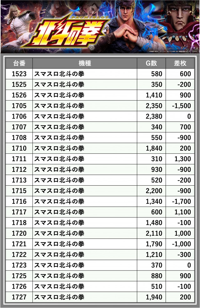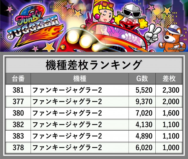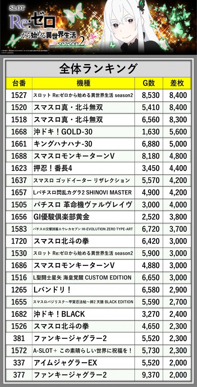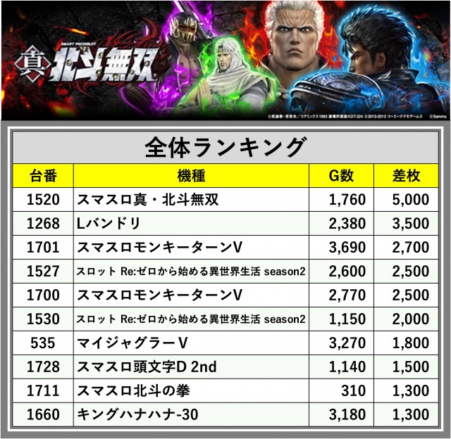 ※差枚数順に掲載しています