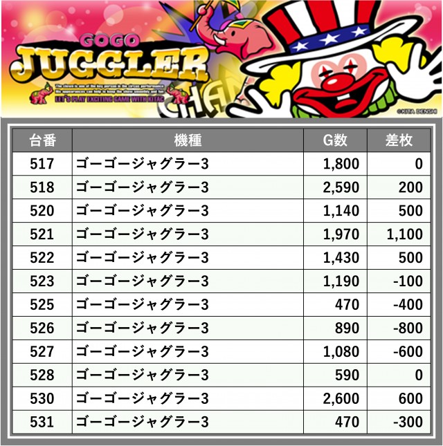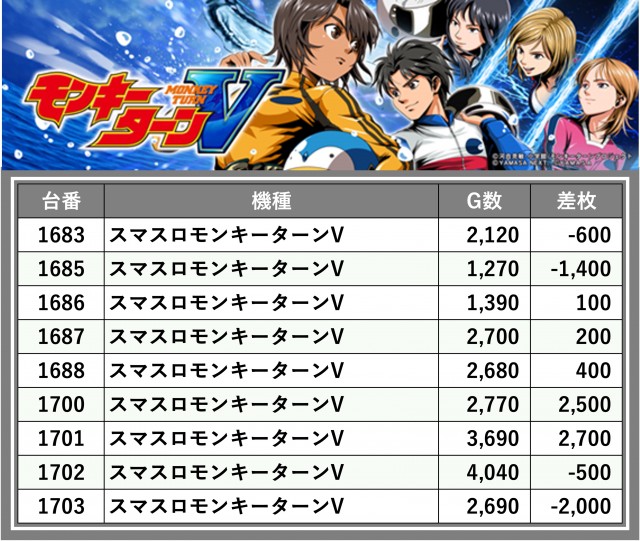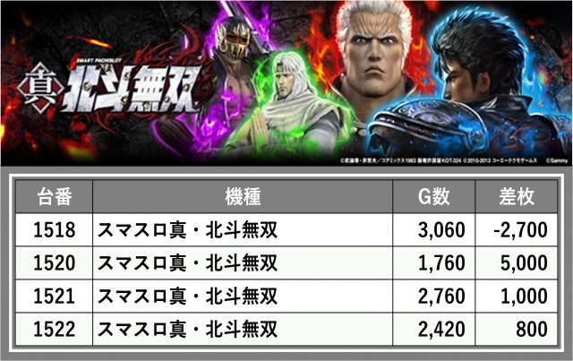 厳選された取材対象機種をはじめ、その他スロット全体から好記録が飛び出した!プレイヤーが楽しんだ1日を下記データにて振り返ってみて欲しい。