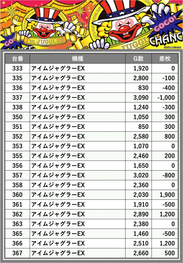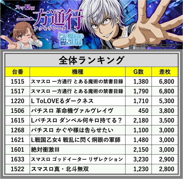 厳選された取材対象機種をはじめ、その他スロット全体から好記録が飛び出した!プレイヤーが楽しんだ1日を下記データにて振り返ってみて欲しい。
