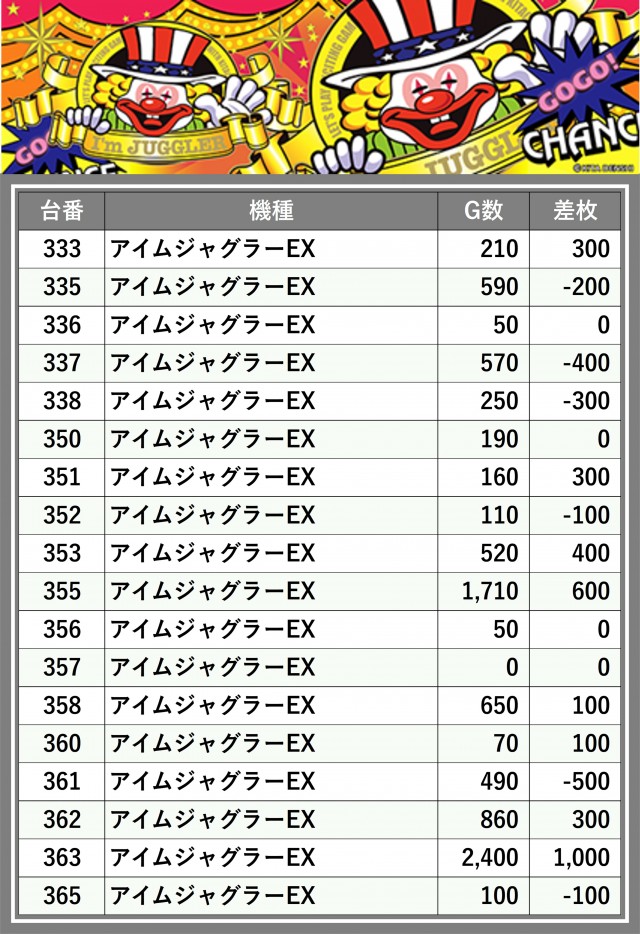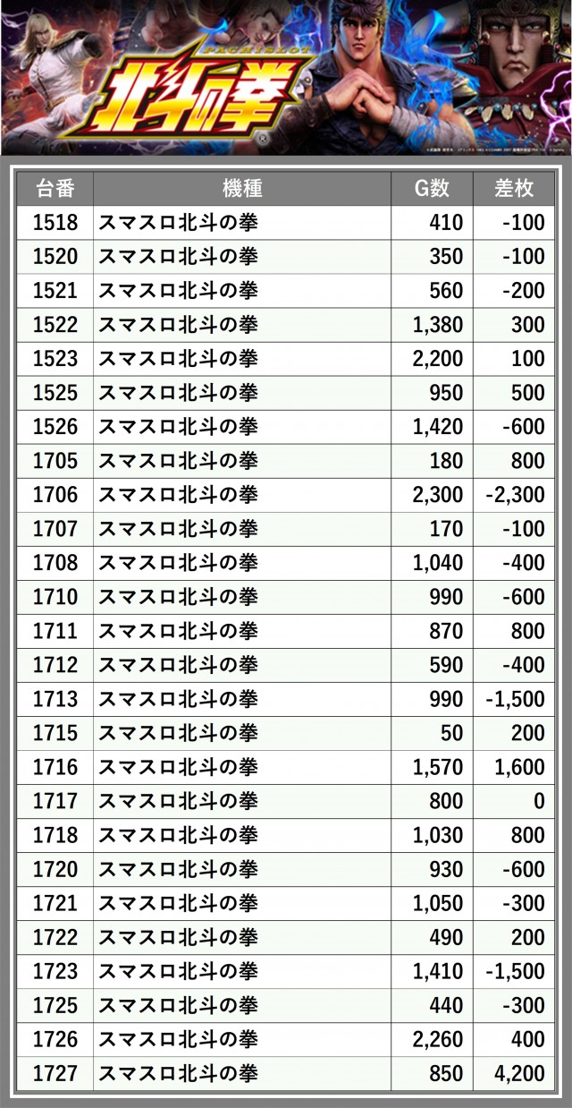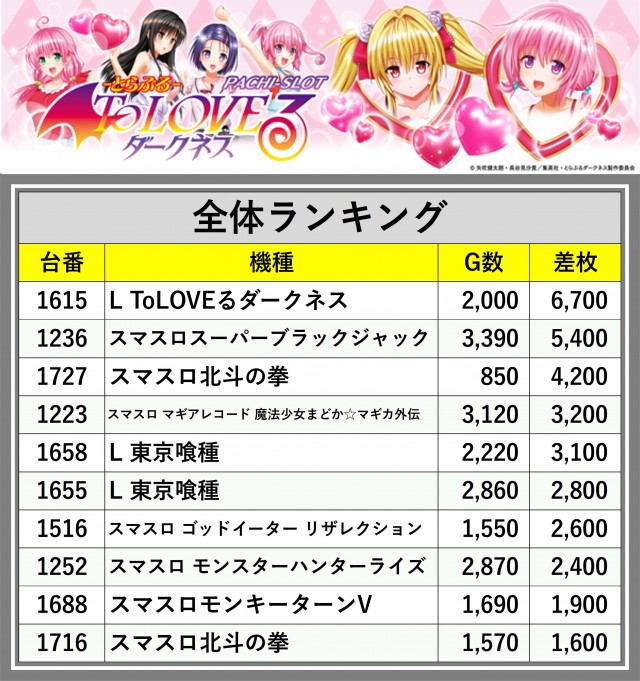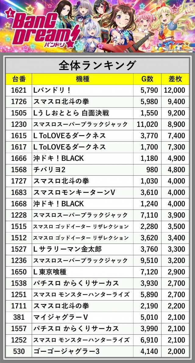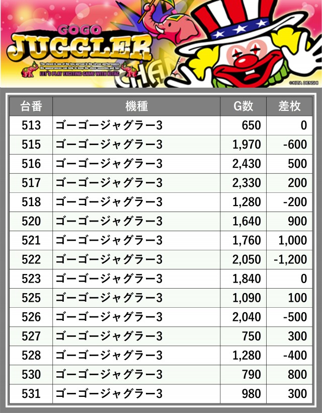 厳選された取材対象機種をはじめ、その他スロット全体から好記録が飛び出した!プレイヤーが楽しんだ1日を下記データにて振り返ってみて欲しい。