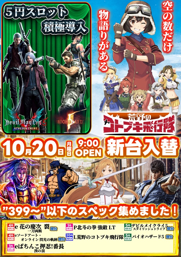 明日10月27日は新台入替!🕘9時開店♪🕘