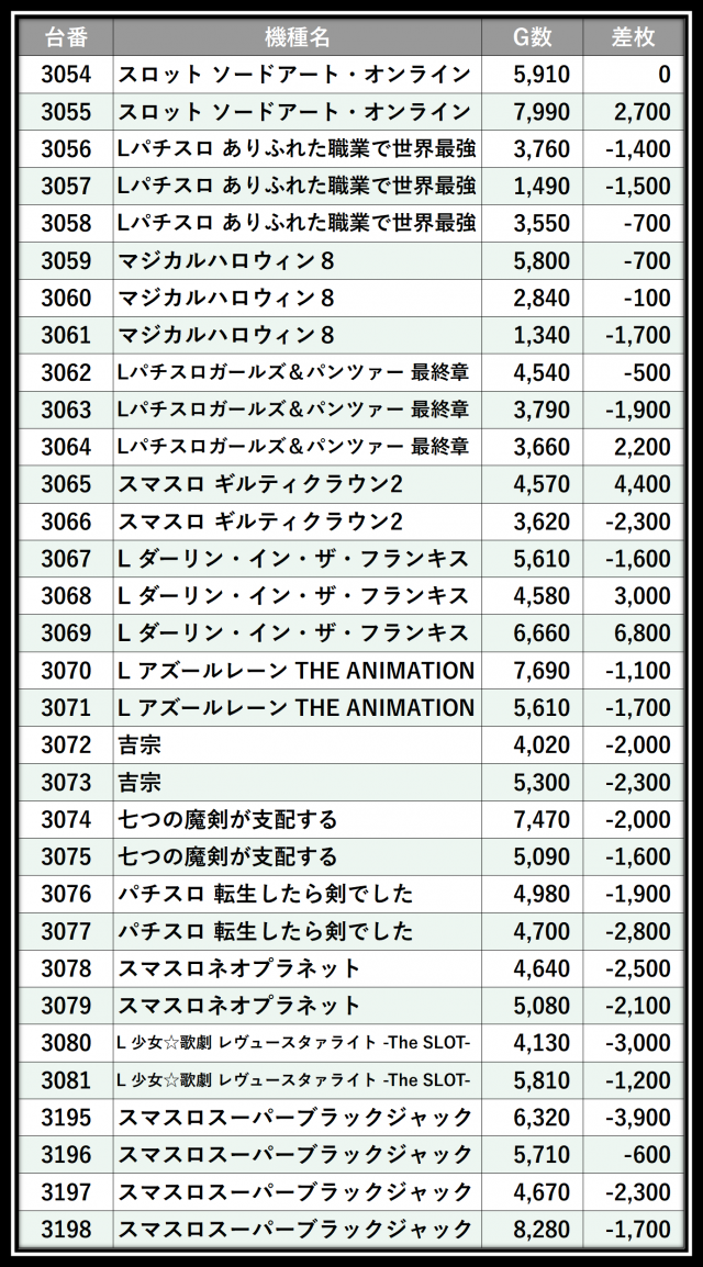 その結果の中から、ぱちタウンが注目すべきポイントを厳選してユーザーにお届け!プレイヤーが楽しんだ一日を下記データにて振り返ってみて欲しい。