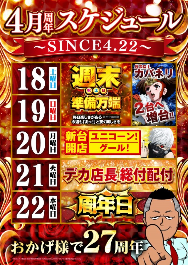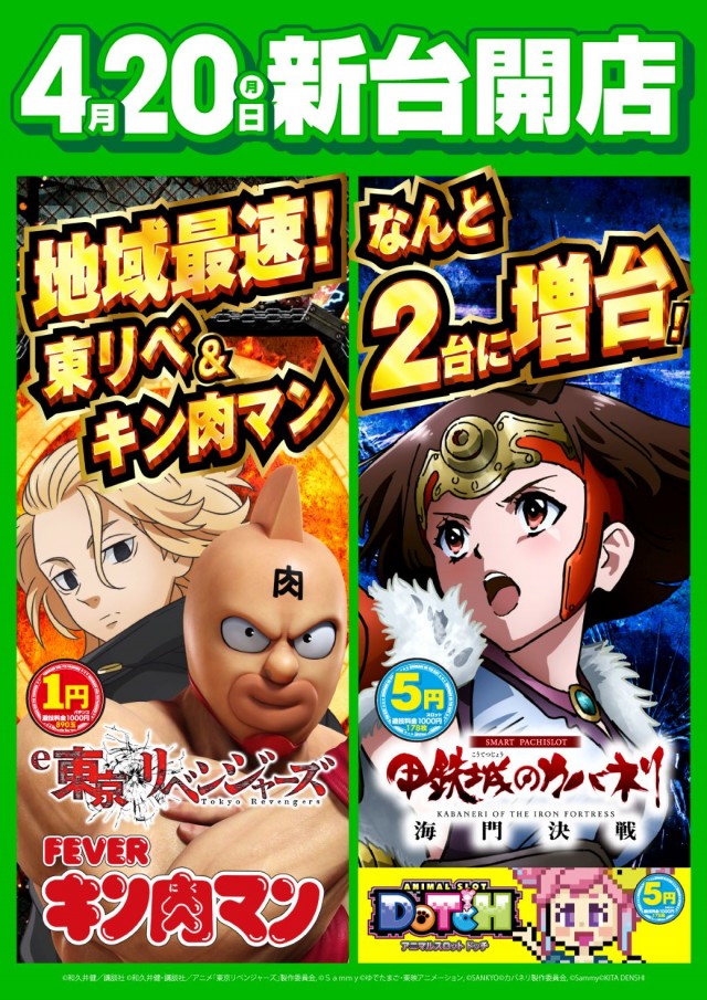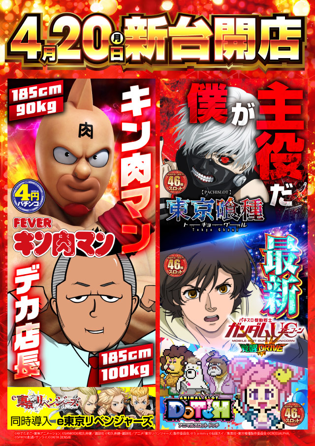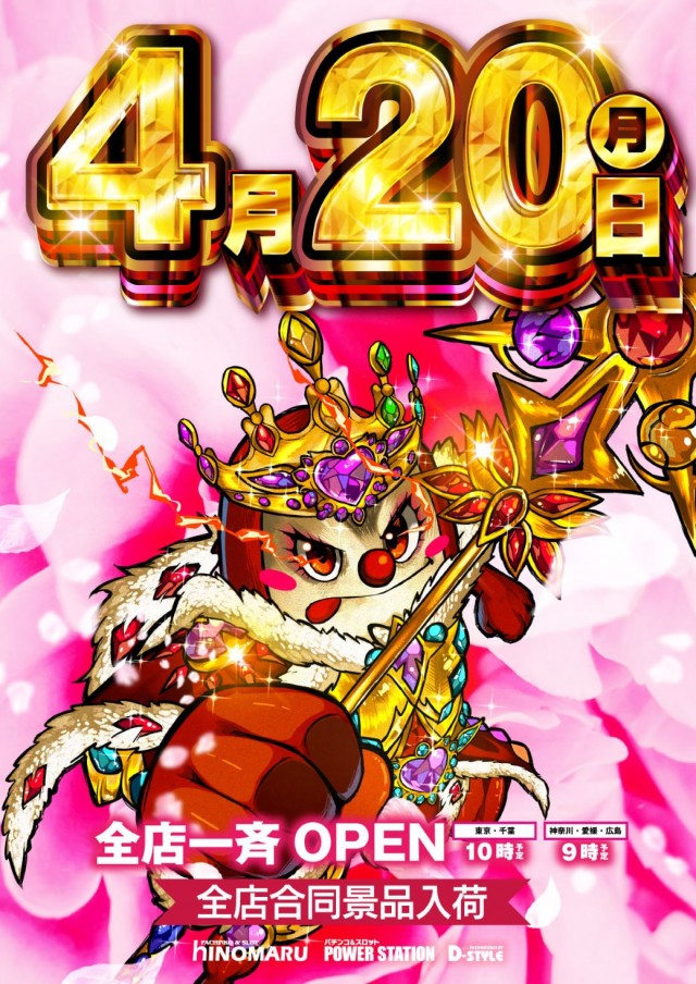 4/20(月)全館9時OPEN&新台開店!抽選は8:45!