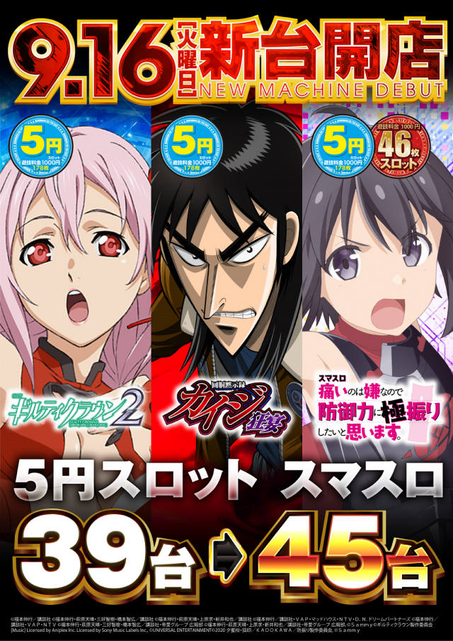 9月はスマパチ積極導入(^^♪新台は許可が下り次第抽選開放です!!詳細は店内にてご確認下さいm(__)m