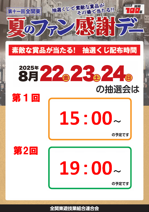 明日8月22日(金)から24日(日)まで3日間 豪華景品の当たる抽選会を毎日2回開催♪