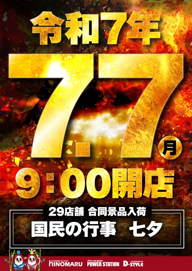 抽選時間は8時45分!開店時間は9時開店!!新台開店もございます♪