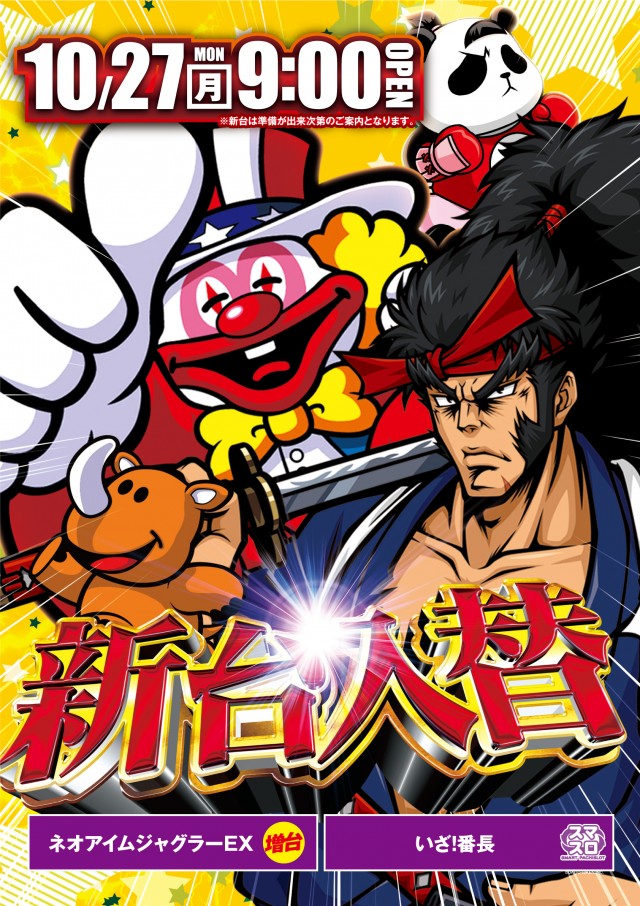 10/27[月]9時開店【新台入替】ネオアイム&いざ!番長