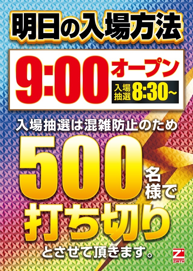 ※入場抽選は混雑防止のため500名様で打ち切りとさせて頂きます。