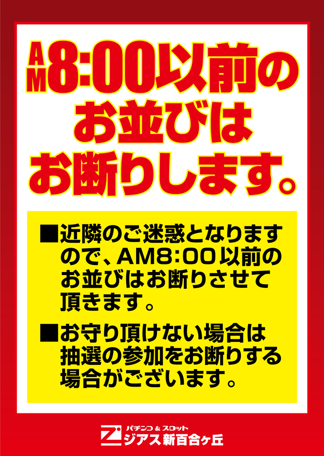 ※朝8時以前のお並びは近隣のご迷惑になりますのでご遠慮下さい。