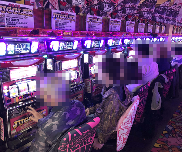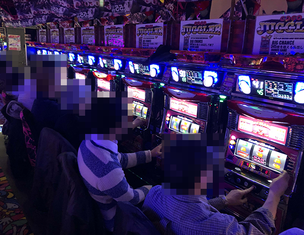 シマのカドから8台が横一直線で設置されており、滞在中は1度も空き台がでることなく、フル稼働をキープしていた。