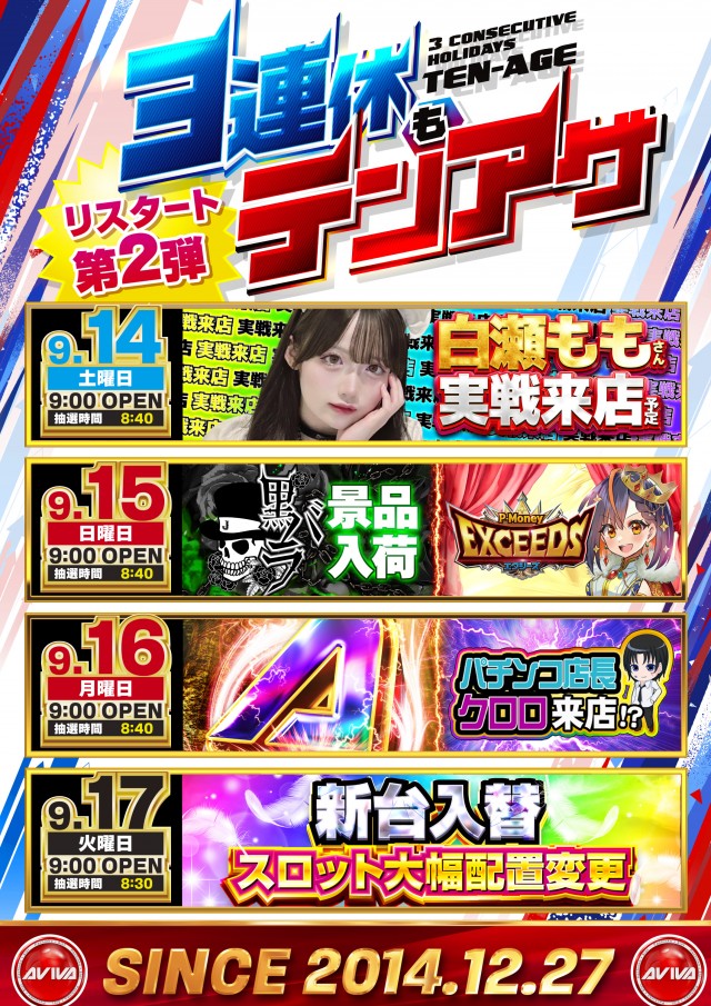 21日(土)AVIVA×RAIGEKI!!全店朝9時開店!!