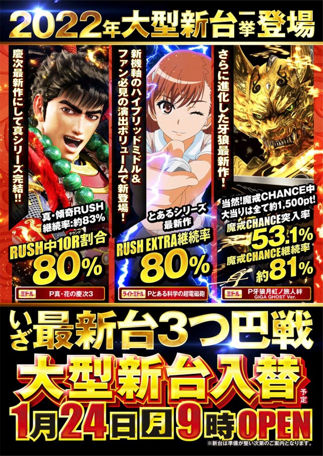 1月18日(火)話題の最新機種が朝からご遊技可能!!