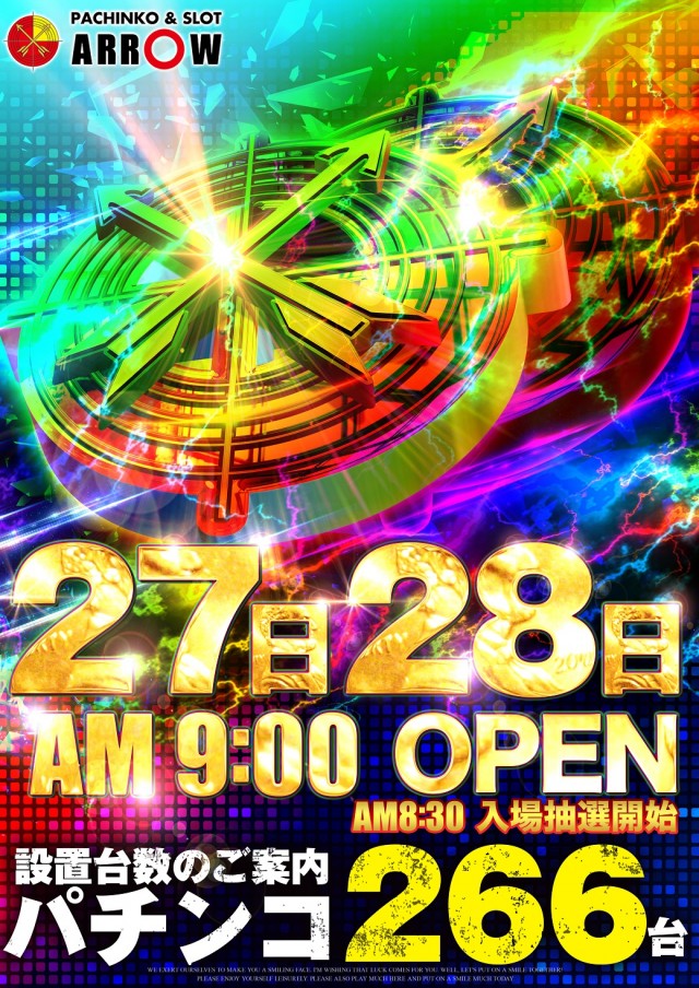 ARROW平塚店 明日9時OPEN‼ 入場抽選8:30~‼