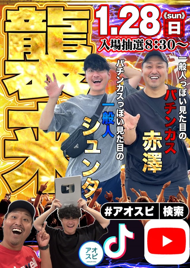 本日🌈ジャスティン翔チャンネル来店予定🌈抽選時間8:30開始