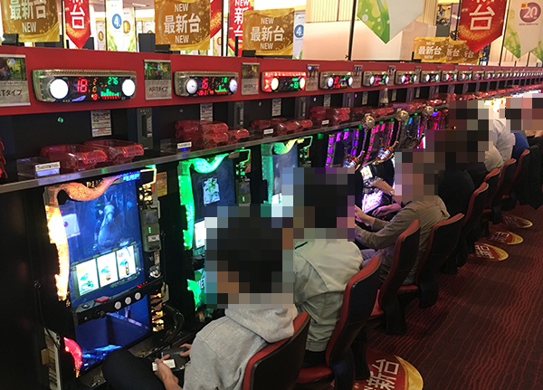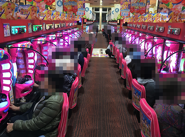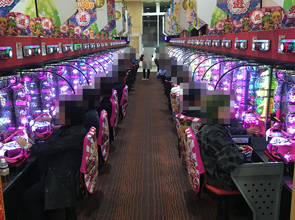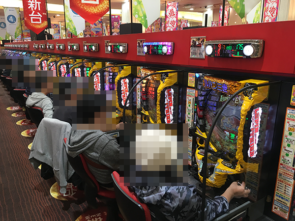 17時すぎの4円パチンコでは、新機種である「CRルパン三世~Lupin The End~」をはじめ、「CR牙狼 魔戒ノ花」や「ぱちんこCR真・北斗無双」などがほぼ満席。
