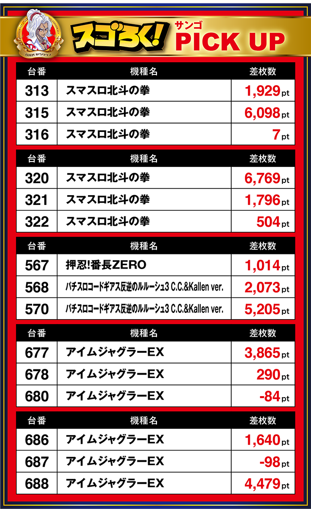 遊技を満喫しているような姿は、567番台の「押忍!番長ZERO」にもあって、3台並んでプラスだったよ。