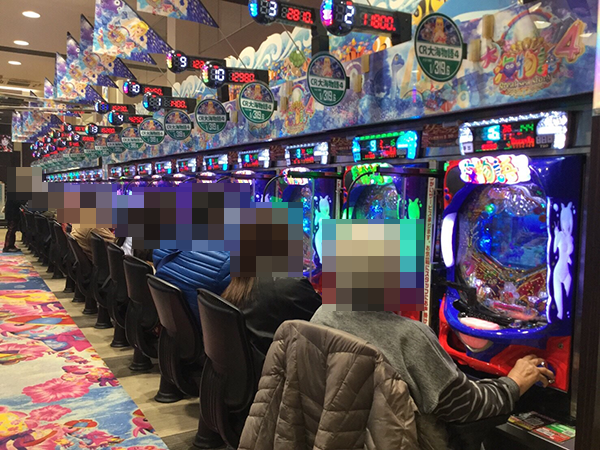 4円パチンコでも新機種が好評となっており、「CR地獄少女 宵伽」がほぼ満席といった状況。理想的ともいえる展開で遊技をおこなうプレイヤーの表情は、とても明るかった。