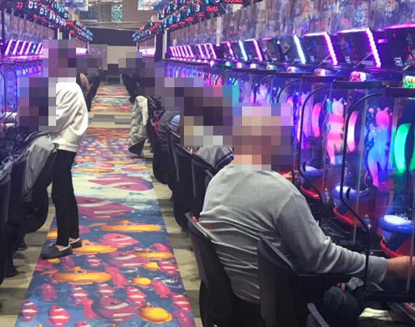 ホール全体が活気づいているなかでも、パチンココーナーがとくに盛況。