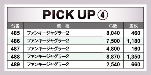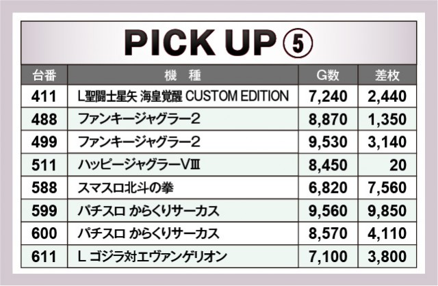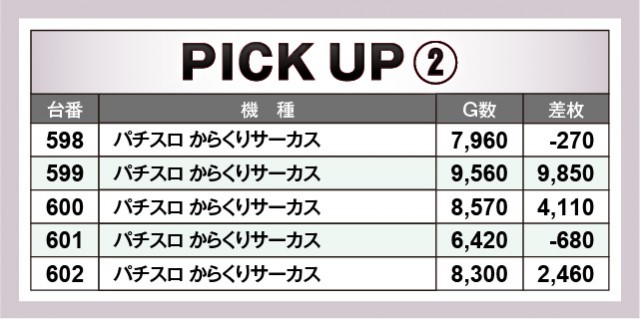 上表の特定末尾の台は、いずれもプラス差枚数をマーク。『パチスロ からくりサーカス』599番台+9,850枚が証明するように、高いポテンシャルを秘めていたのは間違いないだろう。それは消化されたゲーム数からも窺えるため、同店のやる気を感じられる内容となっている。