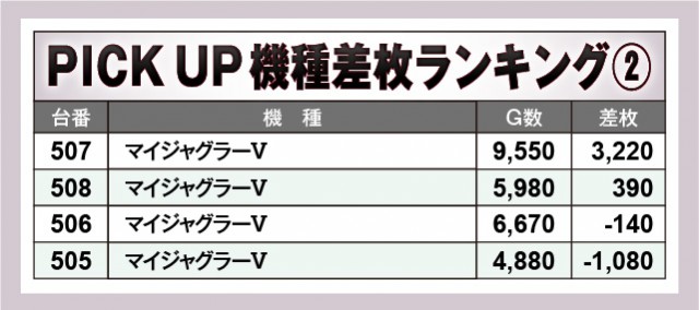 『L聖闘士星矢 海皇覚醒 CUSTOM EDITION』『マイジャグラーⅤ』の両機種は、いずれも朝から閉店までじっくりと打ち込まれた機種だ。前者から万枚OVERが発生し、後者もコンスタントなボーナス当選で3,000枚OVERを達成。全台プラス差枚数を記録するには至らなかったが、ファンは好感触を得ていたのは間違いないだろう。