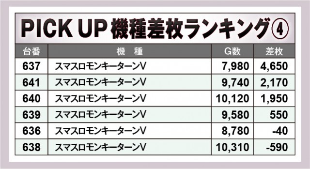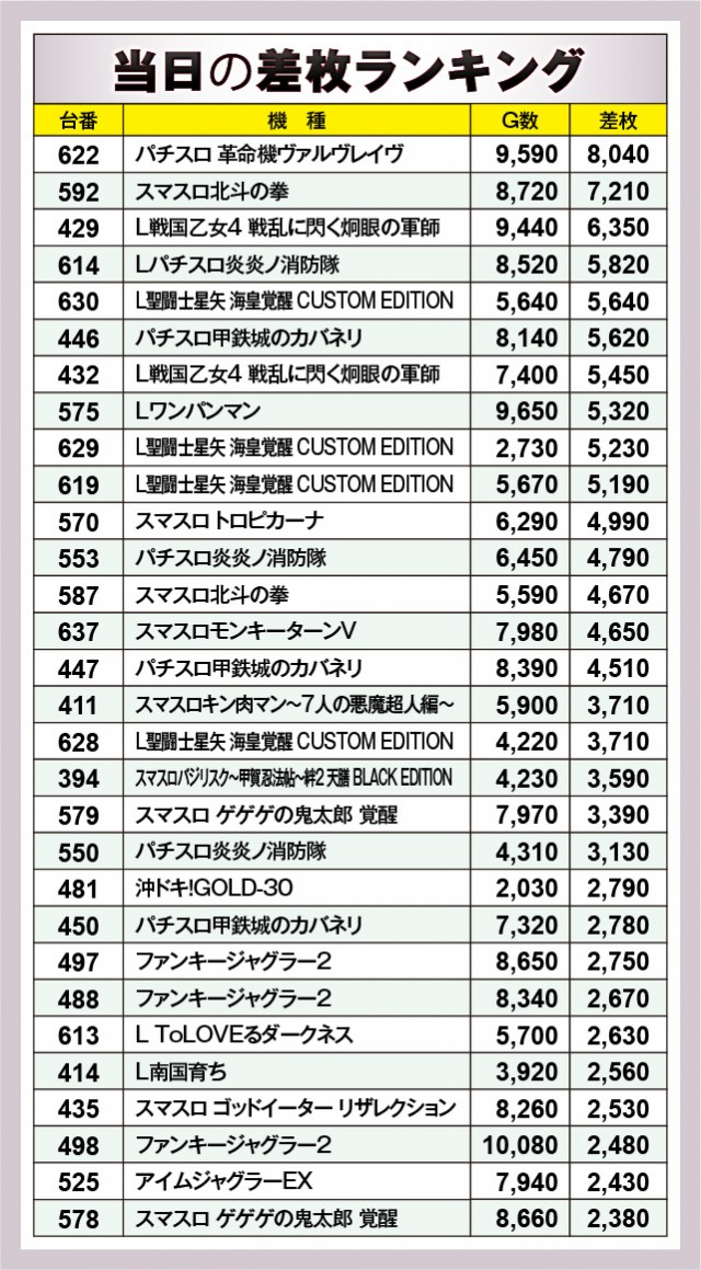 ※差枚数順に掲載しています。