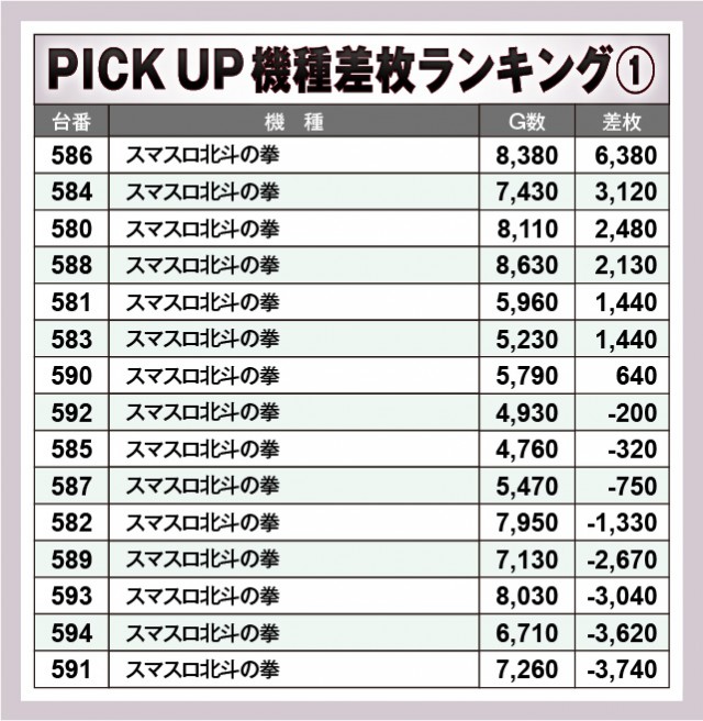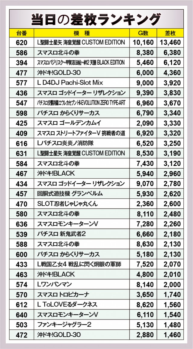 ※差枚数順に掲載しています。