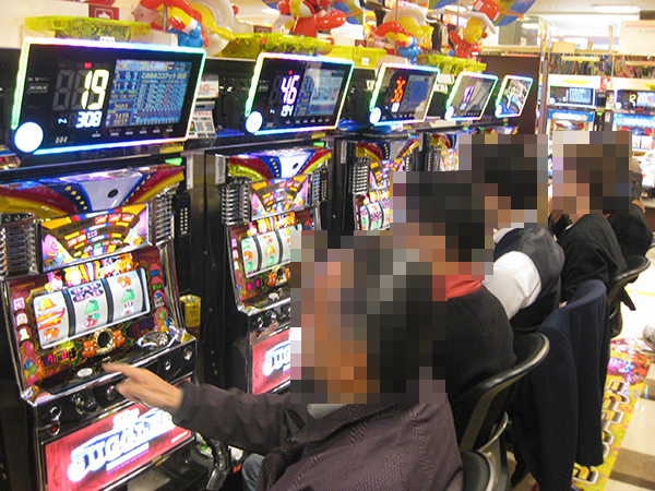 清掃が行き届いているホール内を歩いていると、ジャグラーシリーズが集まっているシマから明るい雰囲気を感じた。稼働率が高く、シンプルなおもしろさを味わえているようなプレイヤーがズラリと並んでいる光景は壮観だ。