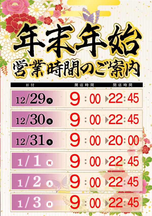 1月5日(火)9:00 OPEN