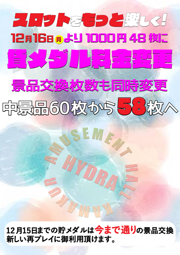 スロット貸しメダル変更