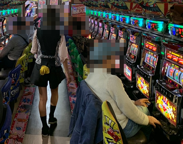 笑顔で接客をするスタッフやにこやかに遊技をおこなっているプレイヤーなど、店内の随所で明るい表情を確認。楽しげな雰囲気が感じられる環境で龍の存在を追った。