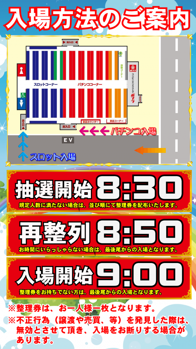 GW最終日🎰本日【抽選入場】8:30開始🎯🎯🎯🎯🎯🎯