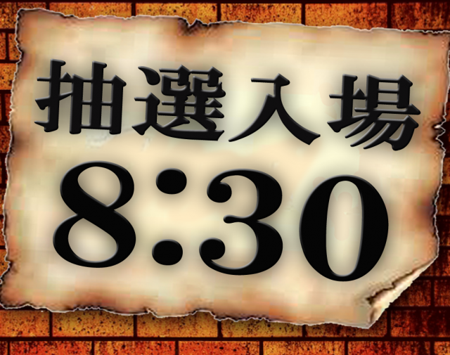 8:30~入場抽選 ※規定人数に満たない場合は、並び順で入場整理券を配布致します。 |