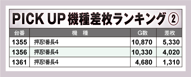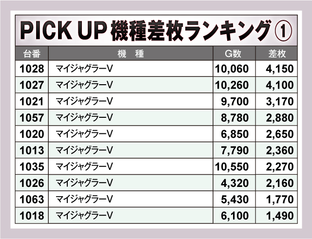 続いては、当日店内を大いに盛り上げた5機種を紹介していこう。5機種のうち4機種がピックアップ台全台がプラスで終了しており、とくに「マイジャグラーV」「押忍!番長4」の2機種は全台が差枚4ケタオーバーと圧倒的! ゲーム数も10,000Gを超える台もチラホラ出現していたので、当日の熱気ぶりはかなりのものだったようだ!