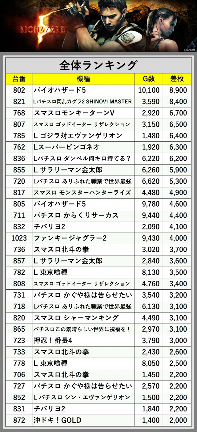 厳選された取材対象機種をはじめ、その他スロット全体から好記録が飛び出した!プレイヤーが楽しんだ1日を下記データにて振り返ってみて欲しい。
