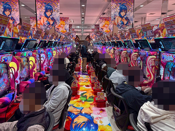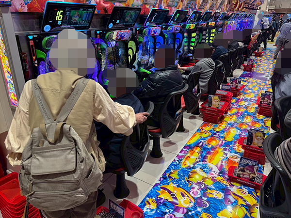 14時ごろの4円パチンコでは、「Pスーパー海物語 IN 沖縄5」や「P大海物語5 ブラック」といった海物語シリーズが好評で、プレイヤーの嬉しそうな表情を多数確認している。