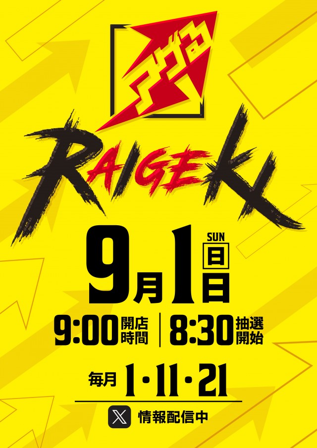 9月1日(日) 9時開店