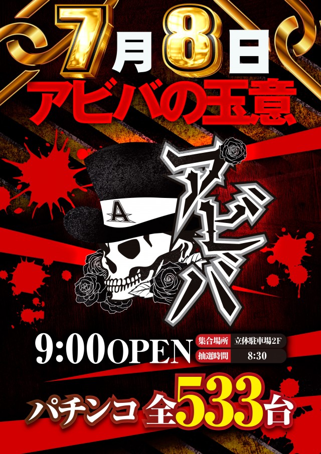 本日!7月7日!もちろん9時開店!明日もアビバアビバで👍