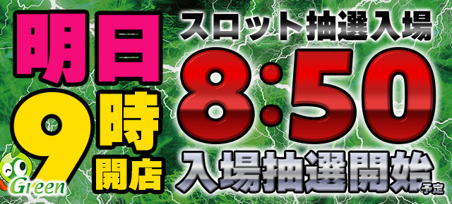 明日9時開店🌞 スロット入場抽選!8:50開始!