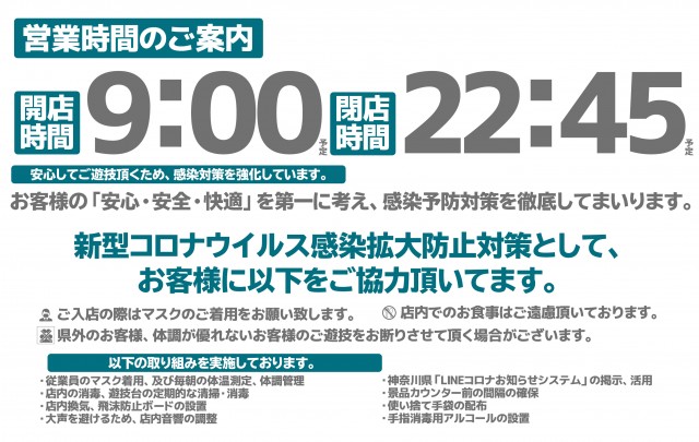 3月3日(水)本日の営業は22時45分までとなります🍆