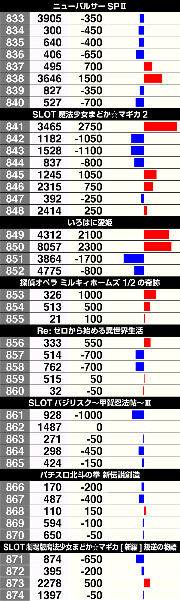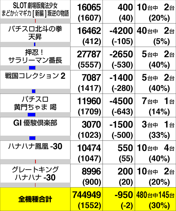 『いろはに愛姫』は4台中2台がプラスで、どちらの台も2000ptを上回った。