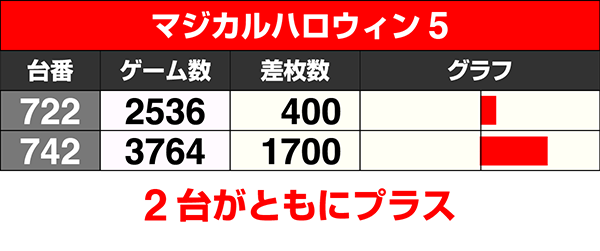 2台設置の『マジカルハロウィン5』が両台ともにプラスptをマーク。