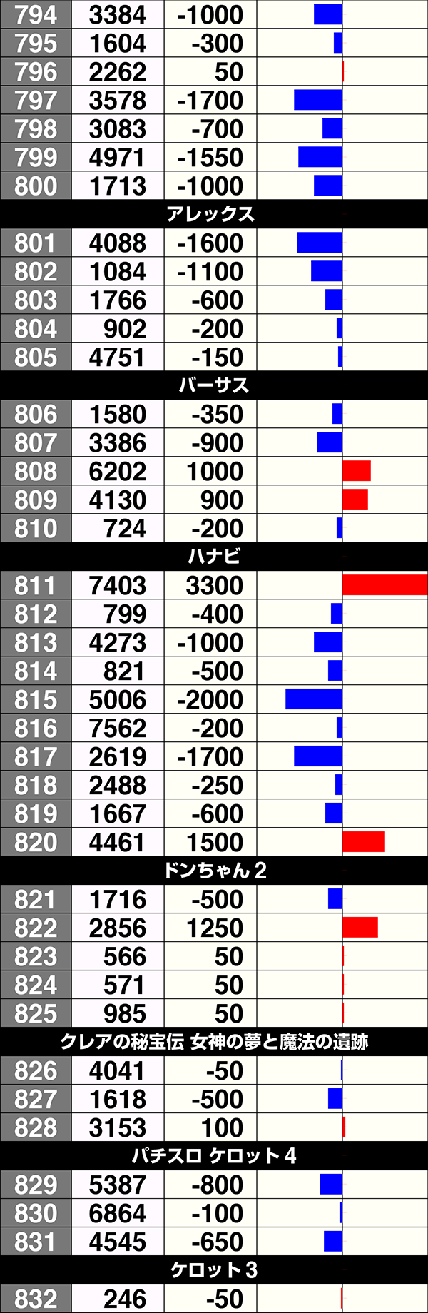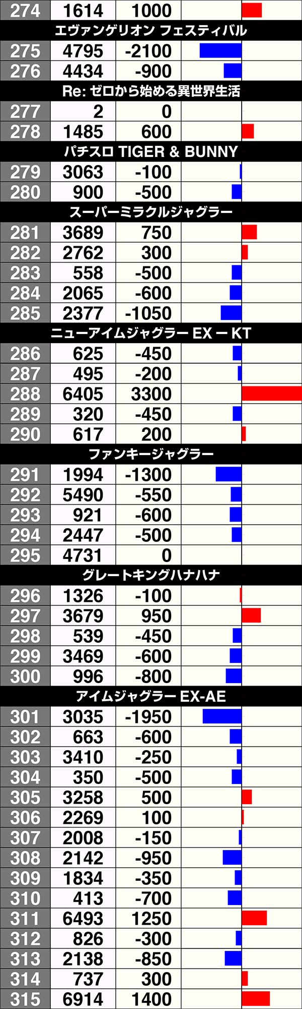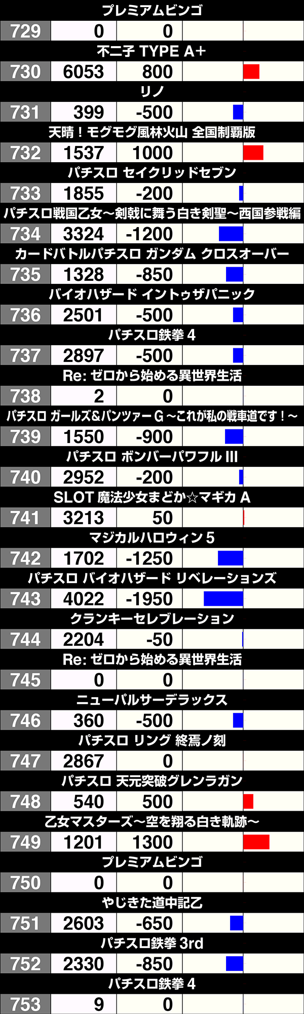 『HEY!鏡』は設置されている2台がともにプラスで、『パチスロ サラリーマン金太郎~MAX~』は3台中2台がプラス。