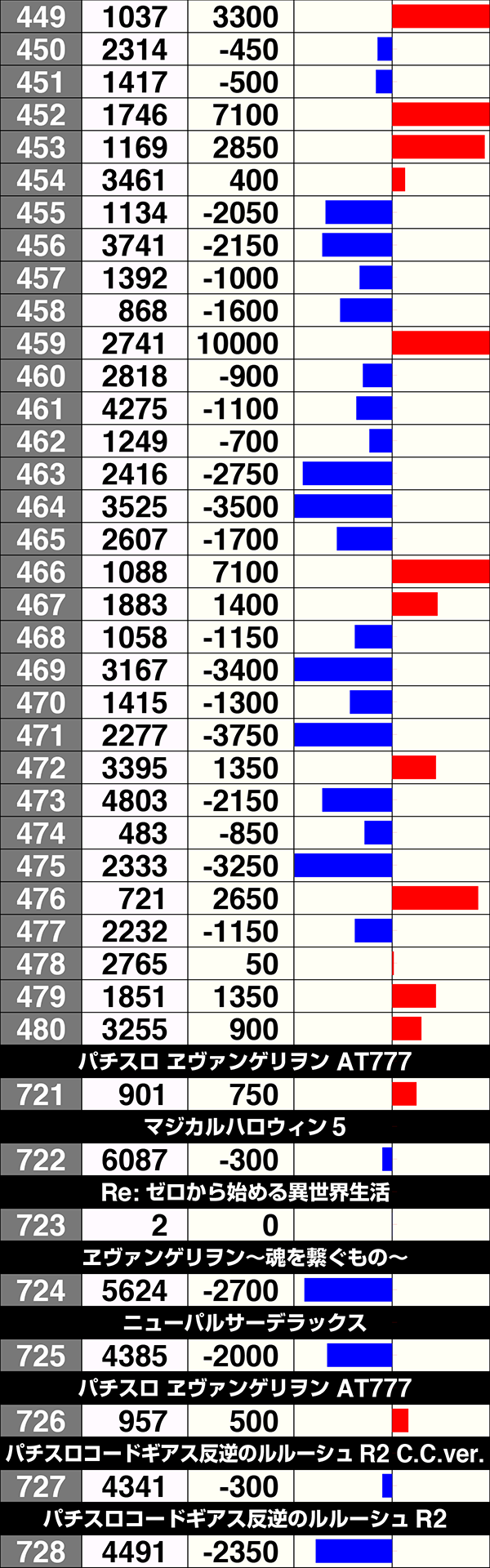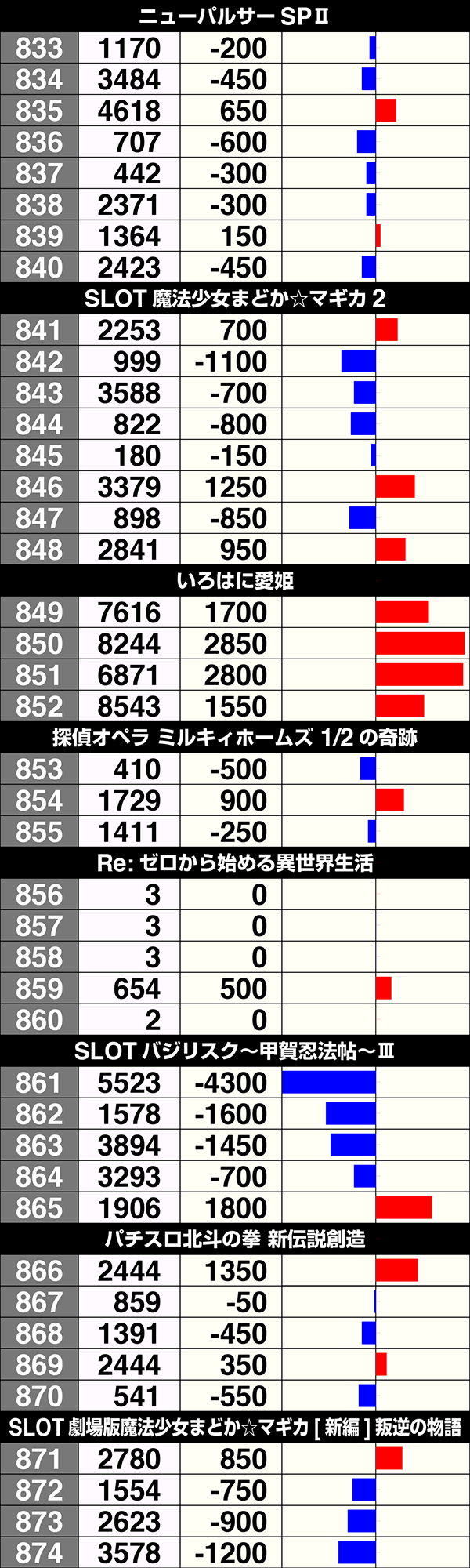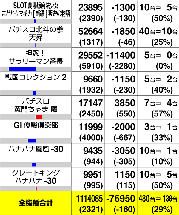 『SLOT劇場版魔法少女まどか☆マギカ[新編]叛逆の物語』は設置されている10台のうち5台がプラス。