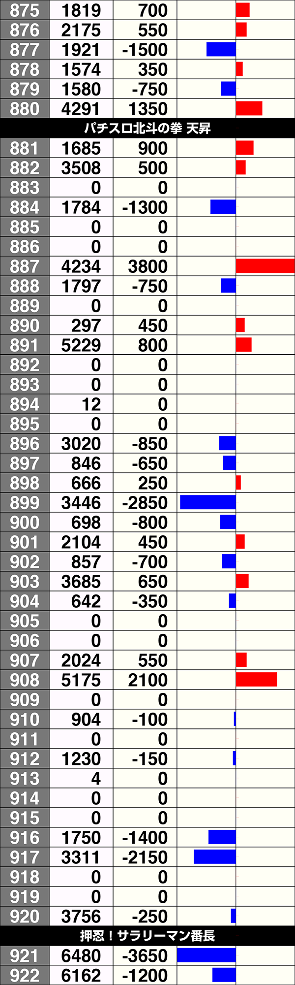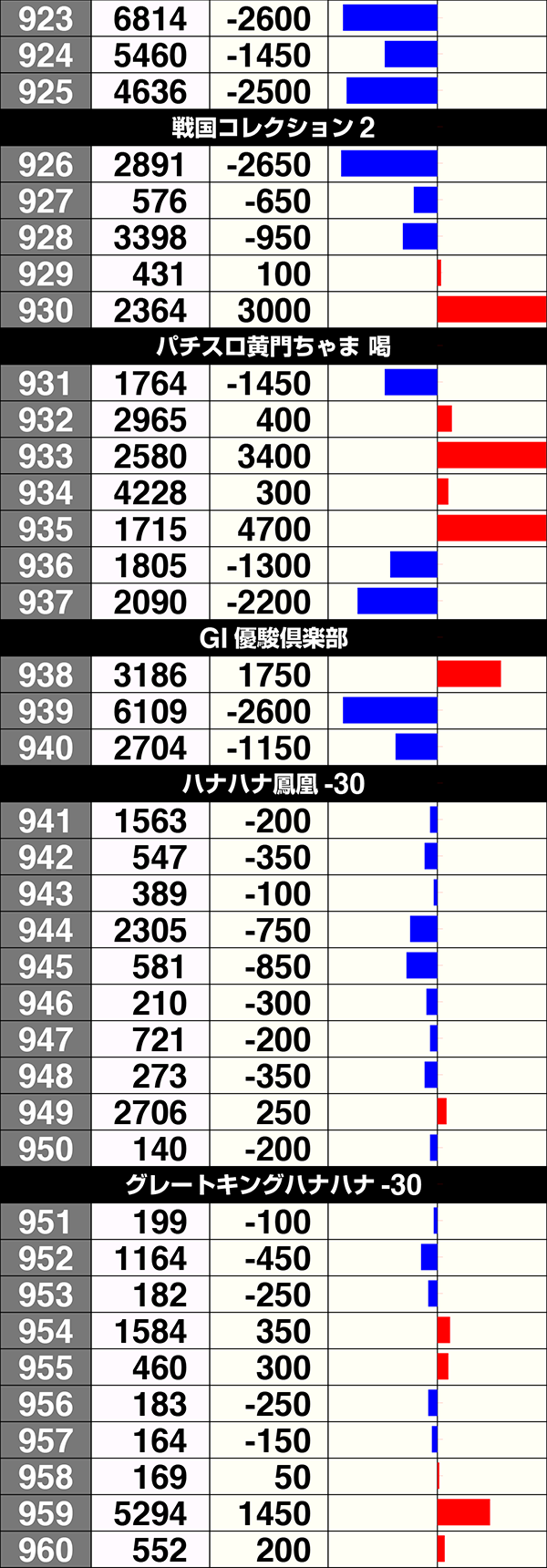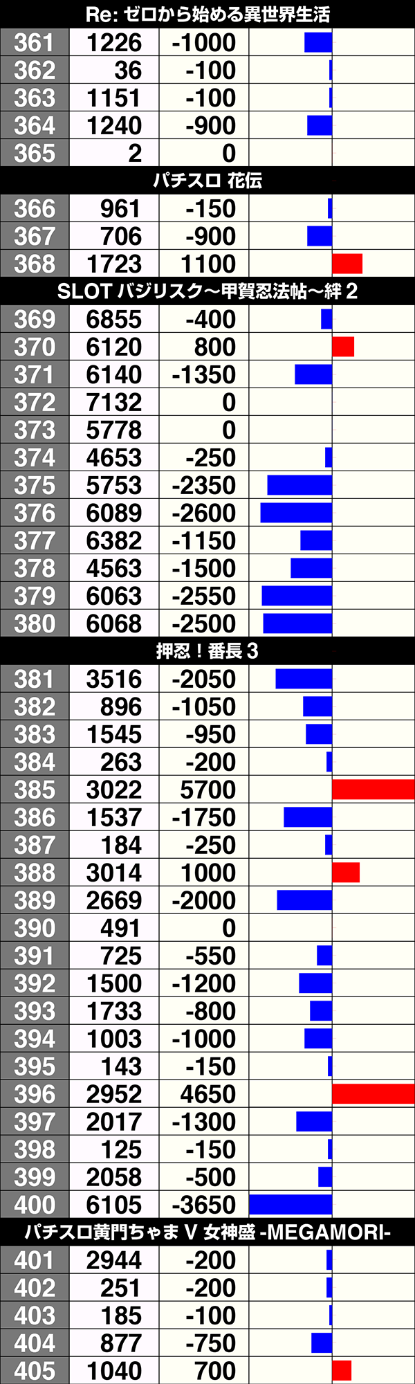 『押忍!番長3』では2台が4000ptオーバー、『プレミアムビンゴ』には5000ptを超える台があった。